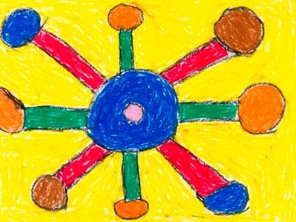 In the large-format, vivid images of Ulrich Röckmann, shapes and figures come together to form playful constellations. The colors highlight each other and create clear boundaries between the individual forms. Circles, rectangles, and triangles combine into structures that sometimes resemble familiar figures. Can you recognize a clown's face or perhaps a children's toy? The shapes seem familiar but are never entirely graspable. However, with their bright colors, they always appear lively and playful. Before the paintings, small idea sketches were created, in which Röckmann designed his motifs with a ballpoint pen.