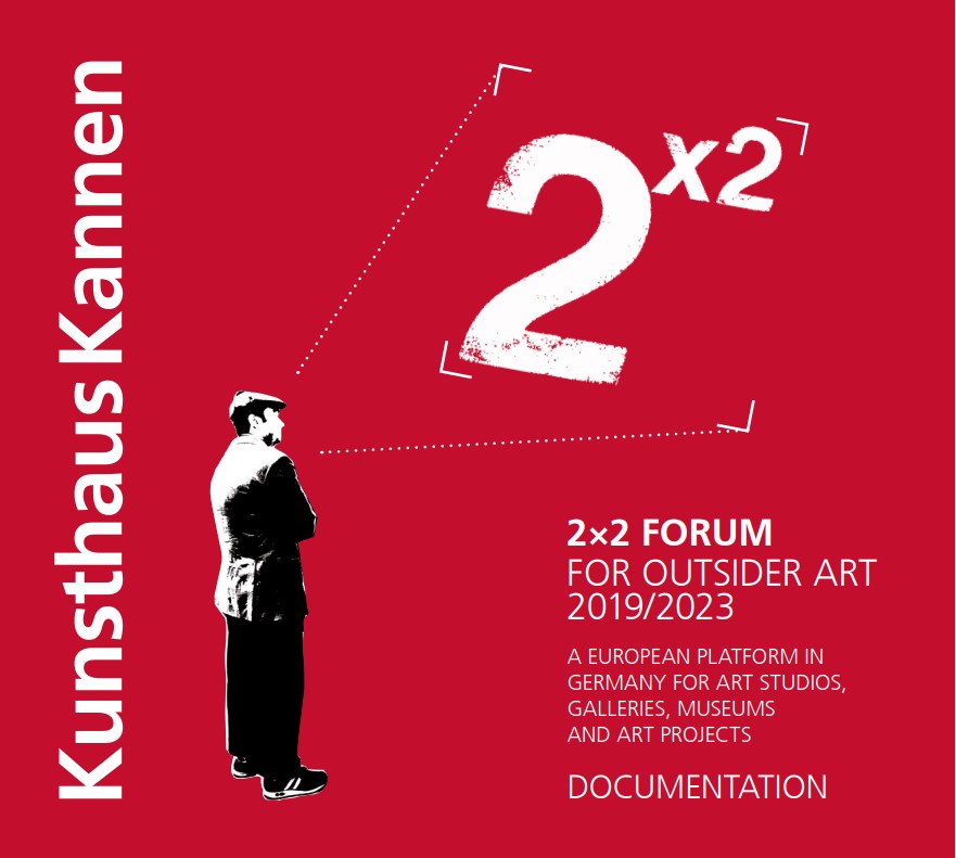 Das 2x2 Forum für Outsider Art im Kunsthaus Kannen in Münster bot im Oktober der Jahre 2013 und 2015, sowie im September 2017 erneut eine europäische Plattform für Kunstwerkstätten, Galerien, Museen und Institutionen, die sich mit dem künstlerischen Schaffenswerk geistig behinderter und psychisch kranker Menschen beschäftigen. Das Buch stellt die 47 Teilnehmer der vergangenen drei Foren mit ihren aktuellen Konzepten vor. In der Dokumentation sind unter anderem Vorträge von Jörg Scheller, Hans Körner, Britta Peters und Thomas Röske, sowie Diskussionen und Kontakte zusammengetragen. Dazu gehören zahlreiche Abbildungen, Fotos und ein Film.
